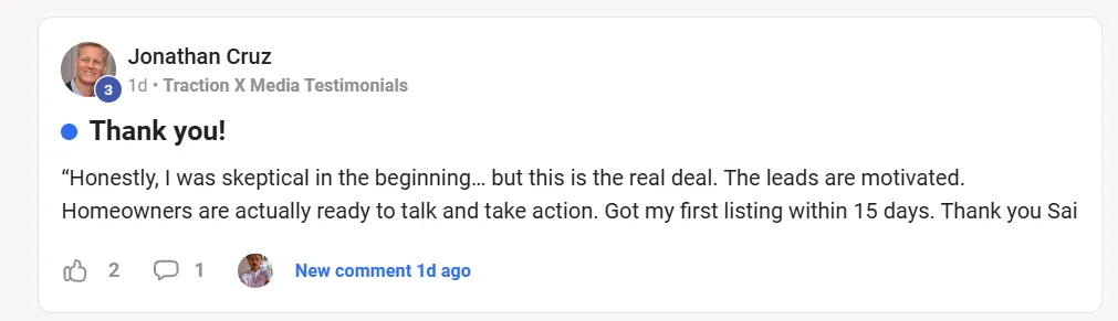 We specialize in motivated seller leads for realtors, not generic buyer leads. Our founder, Sai Shanker Gundu, has worked with 100+ agents, understands the NY real estate market deeply, and built Traction X Media to solve the exact problems agents face.